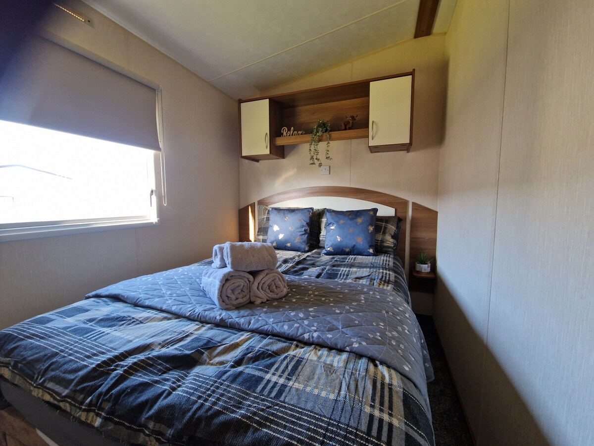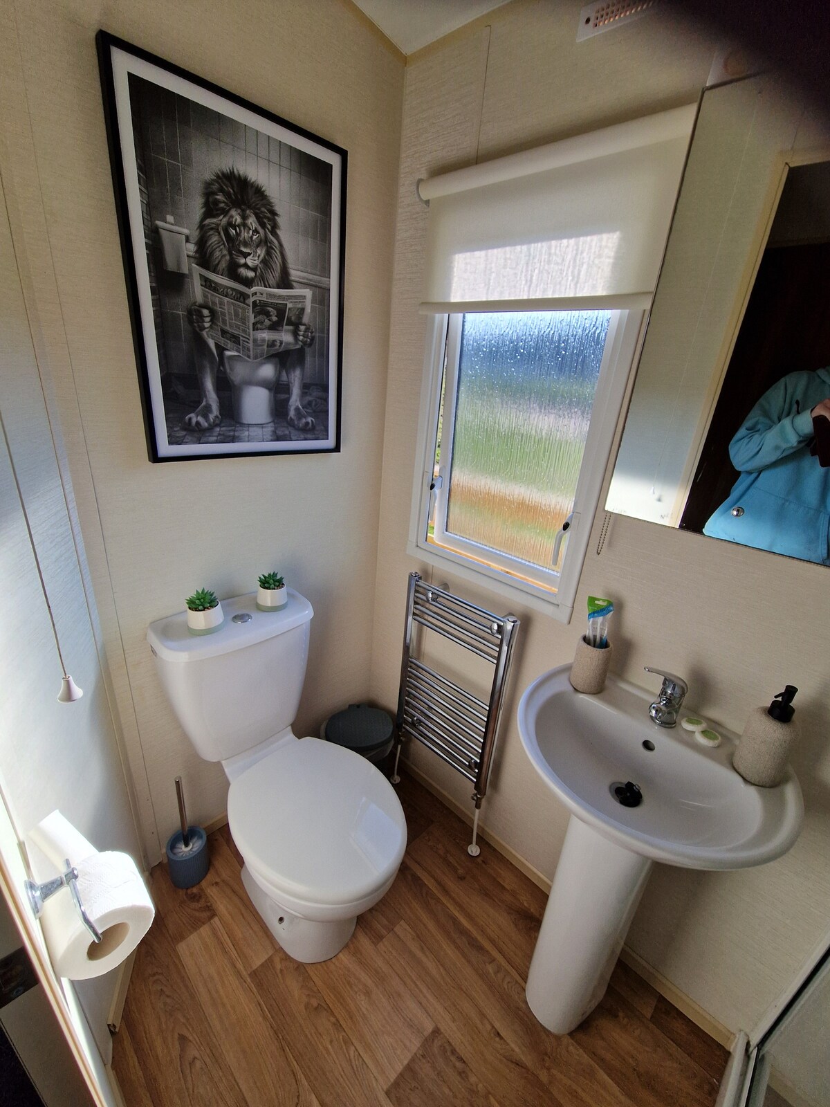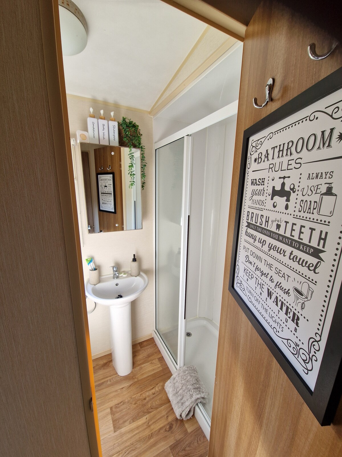 Your home away from home features a spacious caravan with three bedrooms and two bathrooms, both equipped with modern electric showers. Step outside onto the decking and soak in the private hot tub for ultimate relaxation. The lounge and master bedroom are fitted with Sky TV, while a DVD player with a selection of movies ensures cozy nights in. To keep everyone entertained, a variety of board games and books are also available.